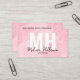 Moda Elegante Tarjeta De Negocios Monograma De Mármol Rosa. Una tarjeta de negocios divertida y simple para marcas, pequeñas empresas o individuos como especialistas en lacas, maquilladores, esteticistas, peluqueros y mucho más! En este momento es de color rosa, negro y blanco, pero puedes cambiar cualquiera de los colores a lo que quieras. El color de las acuarelas blancas se mantendrá sobre el color elegido para el fondo. Mezcla de tipografía moderna y de escritura para un aspecto profesional pero moda.
