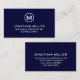 Eleva tu juego de red con esta simple tarjeta de visita Monograma Blanco y Azul de la Marina. El diseño minimalista presenta un elegante monograma blanco sobre un elegante fondo azul marino, combinado con tipografía clásica que se puede personalizar para mostrar su nombre e información de contacto. Esta tarjeta de alta calidad es perfecta para emprendedores, autónomos y profesionales que quieren dar una primera impresión memorable.