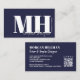 Tarjeta de visita Navy Blue Professional Simple Modern Monograma. Puedes cambiarlo a cualquier negocio que quieras: maquillador, especialista en latigazos, peluquero, o incluso algo como marketing, consultoría y más! Con un fondo azul marino en ambos lados con fuentes blancas en todo, además de un tipo de letra gris en el frente del título. La tipografía es una mezcla de estilos clásicos y audaces emparejados con un elegante tipo de letra para los detalles. La parte trasera incluye espacio para un código QR blanco para que los clientes puedan conectarse rápidamente a su sitio web, con iconos blancos de medios sociales colocados encima de él, puede eliminar cualquier cosa que no desee. Un aspecto de moda y moda, profesional y elegante. Puede cambiar todos los colores para hacerlo como desee. El nombre lateral de la parte delantera debe funcionar con la mayoría de las iniciales, pero si no, puede querer jugar con el espaciado en el editor completo.