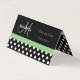 Tarjeta De Visita Monograma verde Punto de Polka Blanco Negro