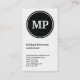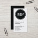 Tarjeta De Visita Monograma vertical de círculo blanco negro