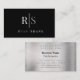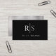 Este elegante diseño capta su atención con un monograma y un nombre en blanco y gris con fondo negro en el frente y plata escobillada en la parte posterior. Funciona bien para muchas profesiones: Diseñadores de interiores, Consultores, Artistas de cabello y maquillaje, Profesionales Empresariales, Realtors, Asociados de ventas, Planificadores de fincas y más. Monograma de DIY, nombre, ocupación, dirección, teléfono/celular, correo electrónico y sitio web.