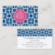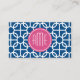 Tarjeta De Visita Monogramas del patrón geométrico rosa y azul calie