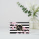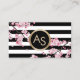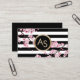 Tarjeta De Visita Monogramo Floral Rosa Moderna Stripes Salón De Bel