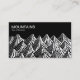 Una plantilla de tarjeta de visita con un diseño original de montaña estilo trenzado a mano en la parte delantera. Nombre de la empresa y tipo de negocio en la parte delantera con nombre y otros datos de contacto en la parte inversa. En esta versión las áreas blancas del dibujo vectorial de las montañas son opacas, por lo que cambiar el color de fondo cambiará el color del dibujo.