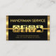 Una cubierta negra con hermosas franjas doradas. Presenta un motivo creativo de mano de oro que puede representar parte del trabajo que se hace, por ejemplo, el árbol de oro para la jardinería de paisajes, el pincel de martillo para la remodelación de viviendas, la bombilla para trabajos eléctricos y el grifo para la fontanería. ; El uso de cada icono se deja a su propia interpretación. En la parte superior está el nombre de la empresa con los datos de contacto cerca de la base. Al dorso, se utiliza el mismo diseño de rayas doradas que la cubierta con el logotipo de "herramientas domésticas" en la parte superior. A esto le sigue su prestigioso nombre, los datos de contacto y una opción de slogan para publicitar sus servicios. Todas las letras están en oro falso. Un gran diseño para temas prácticos y de construcción. Zazzle Made