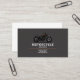 Una tarjeta de presentación elegante con una silueta de motocicleta con un toque de naranja sobre un fondo de carbón oscuro. También se puede utilizar para servicios de motocicletas o automóviles, incluidas ventas, tienda, reparación y escuela de motocicletas.
