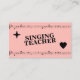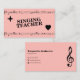 Una tarjeta de visita simple con un fondo rosa, notas musicales, una estrella y un corazón. La parte de atrás incluye información de contacto de personalizable completa y un ilustracion de trébol. Perfecto para clases de música, profesor de canto, entrenador vocal, intérprete de música, etc.