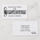 Una tarjeta de presentación de música de diseño con un trébol con notas musicales en blanco y negro. Un diseño elegante que puede personalizar con toda la información que desee.