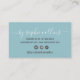 Un diseño editable de plantillas de tarjetas de visita azul para artistas de uñas, con identificadores de medios sociales y tipografía vintage contrastados con tu nombre en escritura.