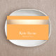 Elegante diseño de tarjetas de visita con banda de Relieve metalizado horizontal FAUX dorada sobre fondo naranja. Este NO es un verdadero Relieve metalizado de oro - sino una imagen. No hay brillo ni textura. Para obtener material de marketing adicional, diseño personalizado o solicitud de logotipo, póngase en contacto conmigo en maurareed.designs@gmail.com y responderé en el plazo de 24 horas. Para envío, consultas de cardstock y precios contacte directamente con Zazzle.