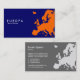 Una tarjeta de visita con un mapa de Europa. Detalles de la empresa en la parte delantera con nombre y datos de contacto en la parte posterior de una versión tonal gris del diseño.