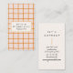 Tarjeta De Visita Naranja retro Wavy Checkered Trendy Boho Funky