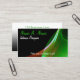 El barrido de ensueño va desde la parte inferior izquierda a la parte superior derecha de este frente de tarjetas de visita. El diseño es un naranja fluido y fractal verde sobre un fondo negro. Plantilla personalizada de la pieza del rompecabezas con contornos rosas y azules desvanecidos y piezas sueltas del rompecabezas
