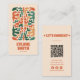 Tarjeta De Visita Naranja Verde Retro Código QR Boho Floral Groovy
