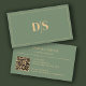 Tarjeta De Visita Natural Minimalist Muted Green Initials QR Code