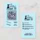 Con esta tarjeta de visita, añada una promoción visual única y a la vez moderna de sus servicios de limpieza residencial y comercial. Este modelo moderno también es para emprendedores que aman los diseños creativos minimalistas. Muestra un diseño fresco con fondo azul claro y un bonito logo de una botella de spray en tono azul marino con efecto de imagen de agua, textos artísticos en 3d y gráfico de limpiadores. También cuenta con un código QR con un hermoso gradiente de marco metálico de color azul verde azulado y profundo. La incorporación de iconos de contacto y medios sociales en gradientes estéticos también hace que sea más esencial para el marketing profesional de su servicio. Puede personalizar reemplazando los detalles con su información.