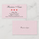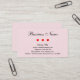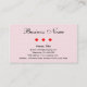 Descripción: Esto es una tarjeta de visita por completo de corazones. El fondo de ambos lados es una imagen semitransparente de pequeños corazones. En el frente está toda la información a excepción del lema del negocio que está en la parte posterior. Tres corazones rojos dividen el nombre comercial del resto de la información sobre el frente.