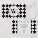 Una tarjeta de visita que ofrece un fondo negro del argyle con el borde rosado. Texto negro sobre blanco escarpado. Personalice con su información. El lado opuesto ofrece el fondo a juego del argyle. Añada su marco formado círculo del rosa del interior de la inicial. Para ajustar el texto o cambiar tamaño de fuente, el estilo, o el color, apenas hace clic "personalizar él!"