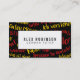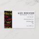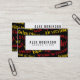 Un diseño moderno que ofrece frases alemanas del principiante en amarillo y rojo en un fondo negro para hacer juego los colores de la bandera alemana. En el centro, hay una caja blanca con un esquema negro para su nombre y profesión, o un nombre comercial y un tagline. Esto sería perfecto para un profesor de lengua francesa o un profesor particular privado. En la parte posterior, el diseño se repite con más espacio para sus detalles.