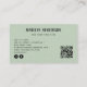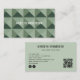 Personalizar esta "Geometric Modern Bold Abstract QR Code Sage Green Business Card", con formas geométricas de color verde sabio modernas dispuestas en un estilo abstracto de ilusión óptica 3D en la parte delantera y un diseño verde sabio y sencillo en la parte posterior de la tarjeta de visita. Esta tarjeta de visita capta la atención instantáneamente. Agregue su nombre o nombre de negocio, título profesional, información de contacto, nombre de usuario de medios sociales, iconos (Instagram, Facebook), dirección y URL de código QR. Póngase en contacto con el diseñador de tiendas para una mayor personalización si es necesario.