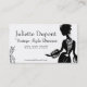 Silueta gráfica de una mujer. Fashion lujosoTarjeta de visita para los maestros de estilo - estilistas, sastres, costureros, vendedores de ropa. Silueta elegante de hermoso vestido. Tus clientes te recordarán.