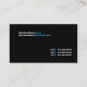 Tarjeta de visita negra elegante con puntos culminantes azules. La mirada Uncluttered evoca profesionalismo y creatividad. Excelente para los diversos profesionales en negocio, así como las industrias creativas, que prefieren elegancia y estilo simples en los materiales promocionales. Papel superior o de lujo recomendado para la mejores mirada y sensación.