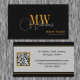 Tarjeta De Visita Negro personalizado, oro, gris y código QR, monogr