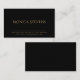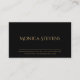 Una tarjeta profesional de negocios en negro, con un texto de oro simple y elegante.