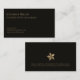 Dé una impresión duradera con nuestras tarjetas profesionales modernas para empresas negras que presentan una tipografía clásica en un elegante fondo negro. En la parte posterior se muestra un emblema de estrella geométrica de oro sorprendente que puede ser reemplazado por su logotipo, junto con un espacio para un descargo de responsabilidad de la industria. Perfecto para profesionales de negocios que buscan una impresión duradera.
