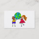 Ilustracion caprichoso del dibujo animado lindo de una pequeña figura feliz muchacho y chica del palillo que mantienen el mundo unido. Modifique y elija su propio color de fondo para requisitos particulares o añada fácilmente el texto. Imagen disponible en los diversos regalos y productos.