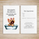 Un ilustracion de color acuático dulce de un feliz perrito Yorkshire Terrier (Yorkie) en una bañera. Ideal para los mascotas que se especializan en el baño de perros y el aseo. Listo para ser personalizado con la información de su personalizado y un espacio para agregar la Cita del cliente. Agregue su nombre comercial, título, dirección, número de teléfono, correo electrónico y sitio web. Puede agregar más información o eliminar algunas.