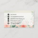 Haga una impresión duradera con nuestra tarjeta de visita Watercolor Peach Fuzz Greenerers Script Name! Con un suave fuzz de melocotón y una textura floral blanca sobre un fondo verde pálido, esta carta exuberante elegancia y encanto. Personalice el frente con su nombre completo en caligrafía de escritura negra, junto con su nombre comercial, lema o profesión. La parte trasera muestra un diseño similar con una franja blanca pálida donde puedes añadir tu dirección, número de contacto, sitio web, medios sociales y correo electrónico. Perfecto para negocios relacionados con flores, jardinería, floristería, yoga, viajes por la naturaleza y más!