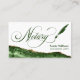 Una moderna y elegante tarjeta de visita con el logotipo notarial con tipografía caligráfica y plumilla de plumas con fondo de ágata verde esmeralda. Ideal para notarios, profesionales, abogados, prestamistas, agentes hipotecarios......