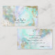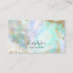 Tarjeta De Visita Nubes de arcoiris de mármol holográfico y hojas de
