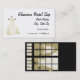 Tarjeta perfecta para un empleado nupcial o la tienda nupcial sí mismo de la tienda. Un lado tiene un ilustracion en blanco negro y oro de una ventana de la tienda con un vestido de boda dentro. Un vestido de boda adorna el lado izquierdo del frente con el texto adaptable