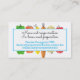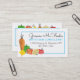 Frutas y verduras coloridas en estas tarjetas de visita para clases de cocina, chef personal de comida saludable, catering o catering, nutricionista o consultor dietético, con zanahoria, cebolla, manzana, limón, pimiento y tomate.