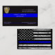 Tarjetas de visita con el logotipo del Personalizado de policía con la bandera azul delgada y la bandera negra en la espalda. Personaliza con nombre, título, logotipo, dirección e información de contacto.