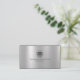 Este moderno diseño de tarjetas de visita presenta un sencillo fondo plateado acentuado con el logo de una oficina de leyes en tipografía gris y personalizable.