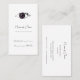 Recuerde a los pacientes sus próximos exámenes oculares o citas de cuidado de la visión con estas elegantes tarjetas de negocios de optometría de estilo vertical. Este diseño tiene un ojo morado con un iris en forma de corazón. Personalice esta tarjeta de visita recordatorio de cita para examen ocular agregando el nombre del optometrista u oftalmólogo.