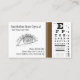 Un diseño de tarjeta de visita que muestra una gráfica visual utilizada para comprobar la visión con el ojo del niño. Este diseño puede ser utilizado por un optometrista o uno que realiza cirugía láser.