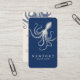 Tarjeta de visita vertical de estilo de pulpo de inspiración vintage. Nuestro diseño presenta nuestro ilustracion de estilo vintage grabado a mano de un estilizado pulpo vintage contra un fondo azul marino, personalizar con nombre de negocio. En el reverso se encuentran los tentáculos de pulpo que enmarcan la parte superior de la tarjeta de visita. Agrega tu nombre y título junto con tu información de contacto. Todas las obras de Moodthology.