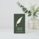 Tarjeta de presentación vertical profesional y elegante para AGENTE NOTARIO móvil o público con ilustracion de oro falso de una PLUMA CUILL PEN O FEATHER con tu nombre y profesión sobre un fondo forestal verde. Muy elegante e impresionante En el reverso sus datos de contacto, íconos sociales y espacio para todo el servicio profesional que usted proporciona, Perfecto para notario móvil, agente de firma notarial. abogado abogado, abogado y más Para solicitud de personalizado, por favor contáctenos a través de la tienda o escriba en citronelladesign@gmail.con otros colores disponibles