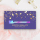 Tarjeta profesional para cirujanos dentales con hermosas estrellas doradas confeti con falsos acentos de Relieve metalizado de oro sobre un fondo morado. Añade tu nombre y datos de contacto para hacer una primera impresión duradera.