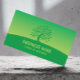 Tarjeta de visita verde para árboles de cuidado de jardín y paisajismo.