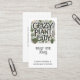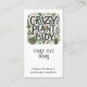 Una tarjeta de visita de paisajista con una tipografía de loca expresión de señora de planta ilustrada con hojas y plantas alrededor de la tipografía, para una tarjeta de negocios única de jardinero.