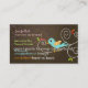 Tarjeta De Visita Pájaro retro en una rama + negro + café