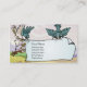 Dos pequeños pájaros lindos que soportan una bandera con su información sobre ella.