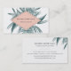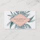 El diseño tropical único incluye el nombre y el título o el nombre de la empresa expuestos en un elemento geométrico de melocotón veraniego, sobre hojas de palmeras tropicales verdes de jasper. Añade tus datos de contacto completos al reverso, adornado con un pequeño frontón de palmeras.