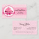 © Socialite Designs. El diseño de la tarjeta de visita de nuestra pastelería de cupcakes tiene un elegante quequito atado con una cinta y dentro de un círculo de encaje. Una tarjeta de visita perfecta para un negocio de panadería o de restauración de eventos como mesas de postre. Personalice esta tarjeta de presentación de la panadería de cupcakes con su información.